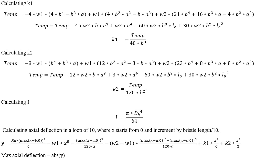 | 5 | Bristle Diameter | Diameter of the Bristle (User Input) | in, m |