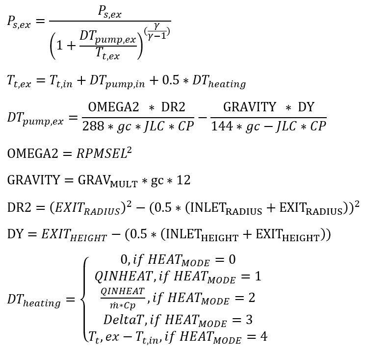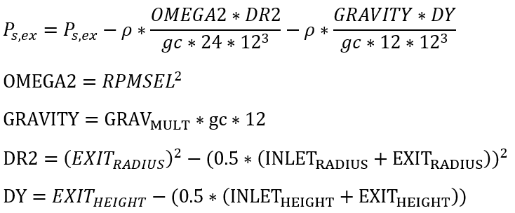 VXA Fluid velocity relative to the rotational reference frame (i.e. rotor) at the restriction exit before heat input (QIN) effects. ft/s, m/s