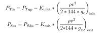 The type of inlet losses. K – Incompr Loss Coef Kin = inlet head loss / dynamic head, or