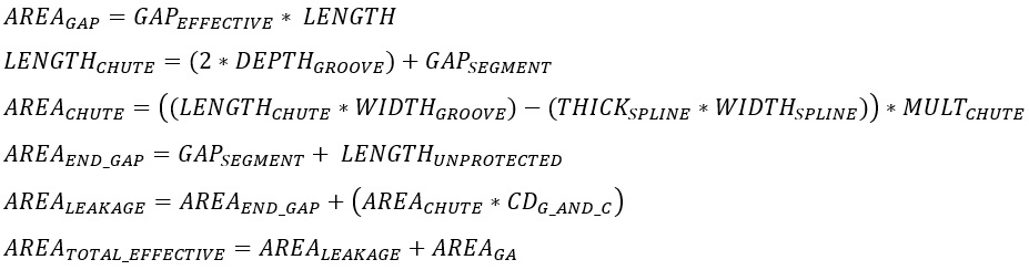 CHUTE_A = ((CHUTE_LENGTH * GROOVE_WIDTH) – (SPLINE_THICK * SPLINE_WIDTH)) * CHUTE_MULT Where: CHUTE_LENGTH = (2 * GROOVE_DEPTH) + SEGMENT_GAP |