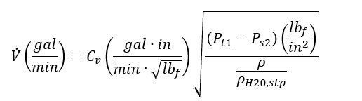 The valve element routine simulates incompressible liquid or compressible gas flows. For incompressible liquid flows, we start by presenting the standard equation of a valve with its flow rate defined by the Cv coefficient.