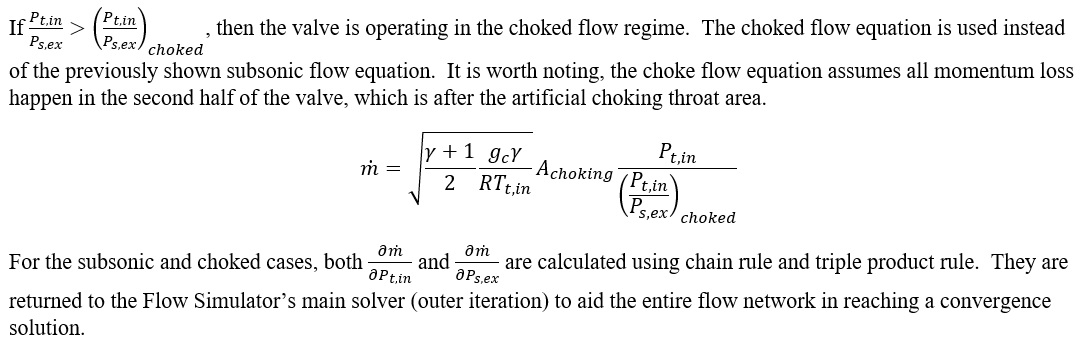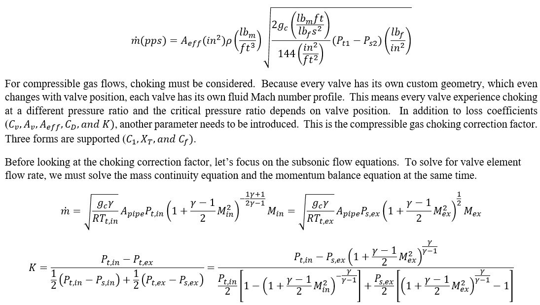 Since the Flow Simulator’s valve element supports other loss coefficient types, we were able to use the above equation together with standard incompressible loss coefficient conversions to make relate one form of loss coefficient to the others.