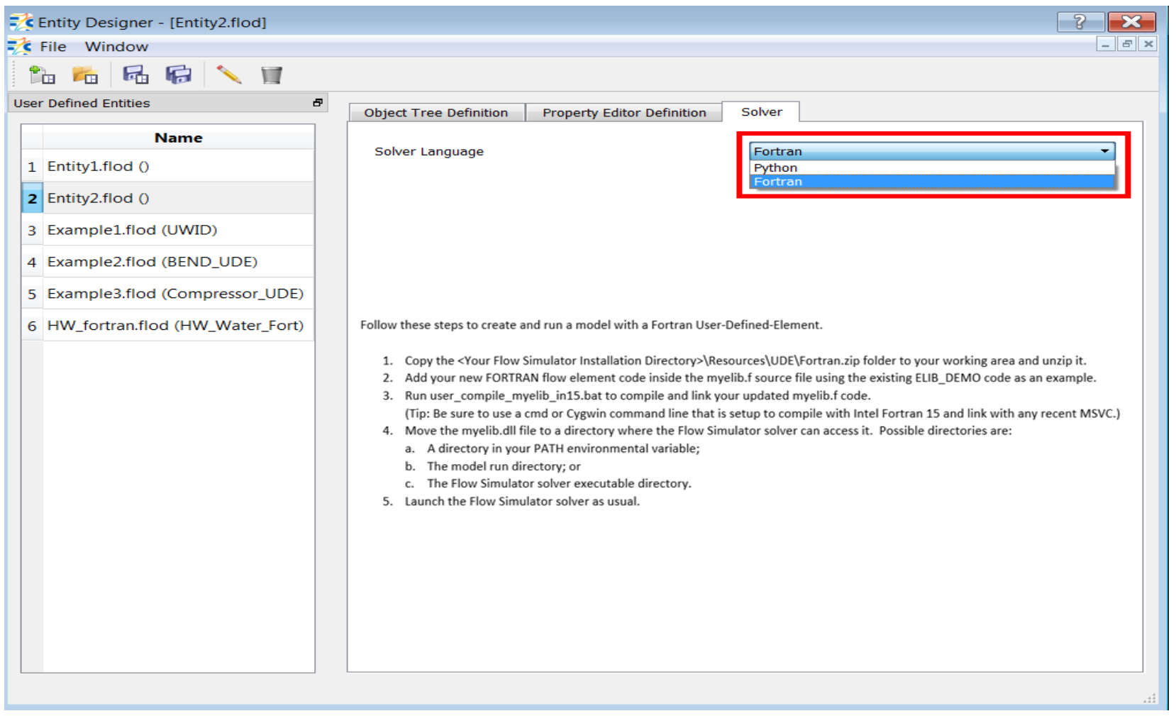 Solver panel interface allow users to write a Python Script or use Fortran Coding to create user defined solver.