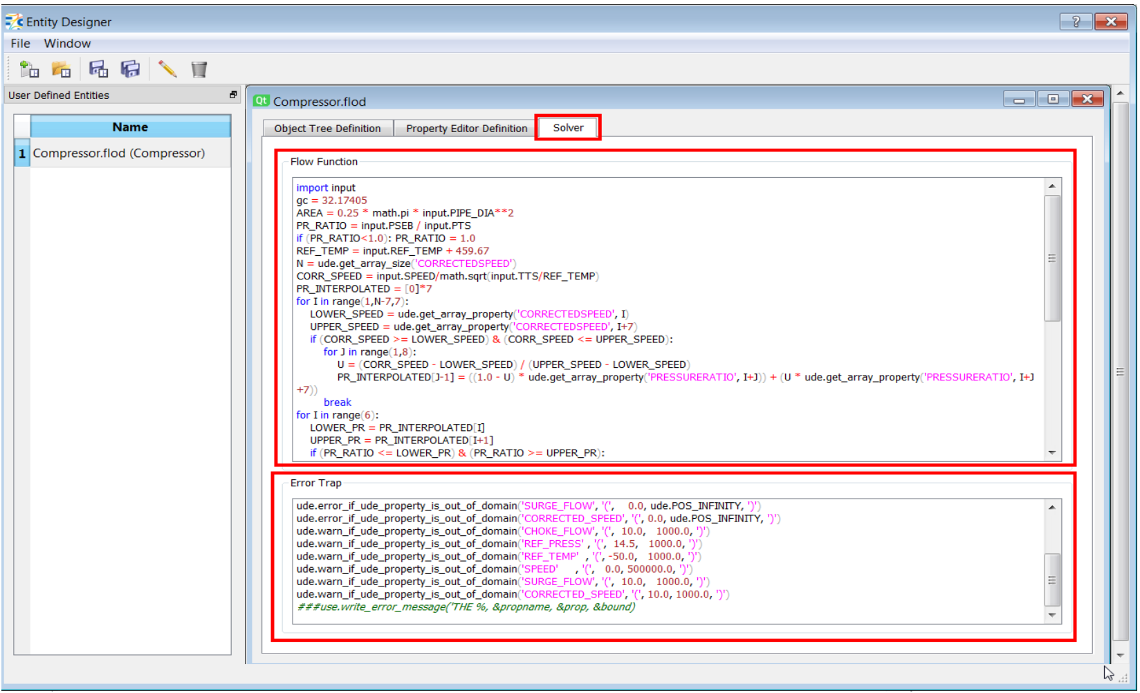 - For Python User interface, it has two different panels, one for Flow Function which is the solver routine for user defined element, & the other panel is to setup the error traps for the solution routine.