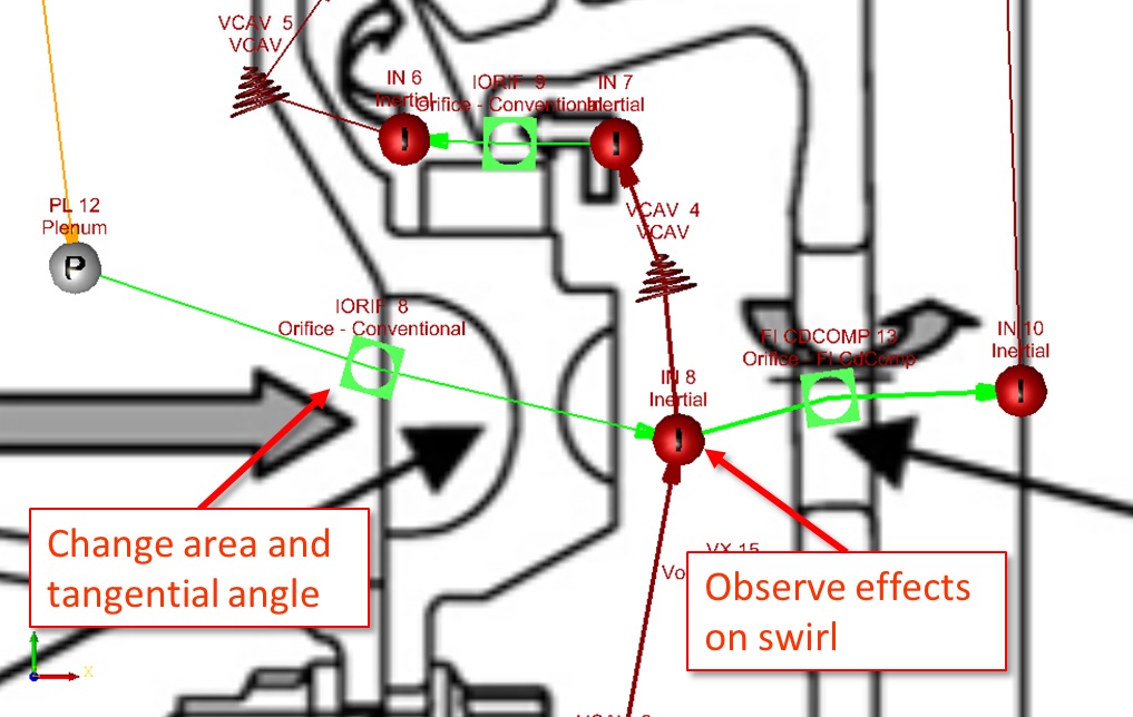 - The user will start with the existing S1B supply model and set up a probabilistic run to investigate the effects on swirl caused by changes in angle and area of an upstream element