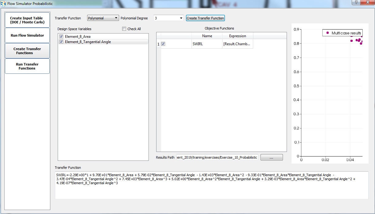 - Click “Create Transfer Functions” in the Flow Simulator Probabilistic Window