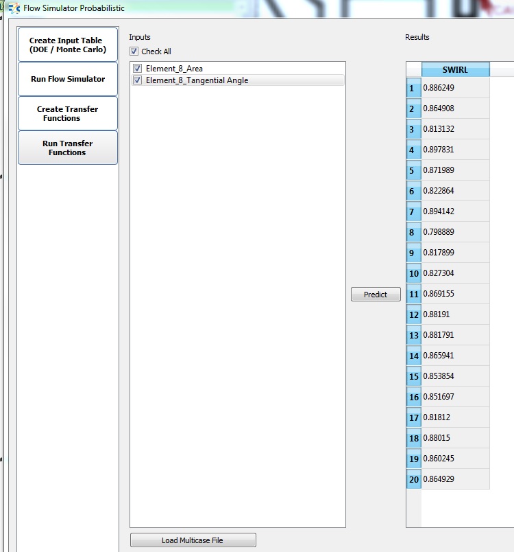 - Click “Run Transfer Functions” in the Flow Simulator Probabilistic Window