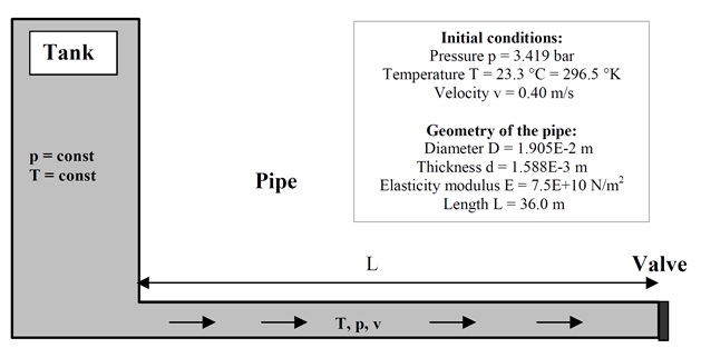 valve is closed, there will be pressure waves in the pipe. This is an example model