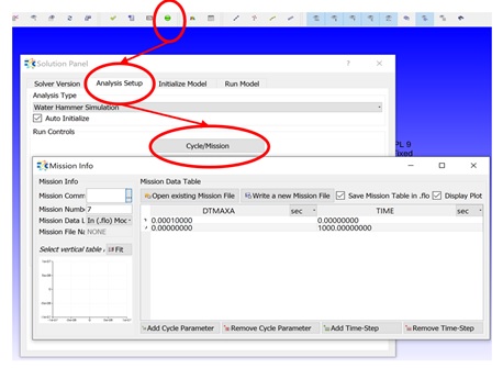 - Define Mission table for the controller (RUN → Analysis Setup →