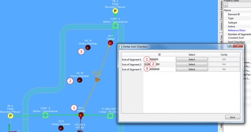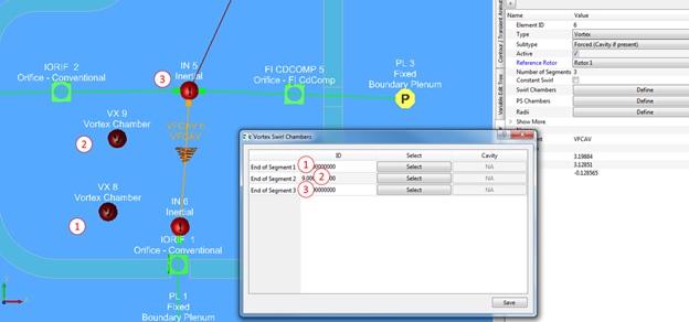 - Connect the inertial chambers with Forced Vortex (Cavity of present) elements