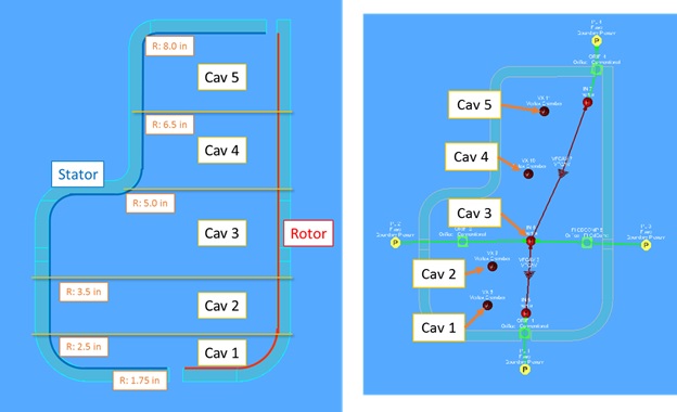 - Connect a FI CdComp orifice between the rotor boundary plenum (right) and the center