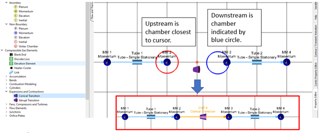 - With this new feature, you can create elements faster by automatically connecting an element to the closest chamber or grid location. Press the “s” key while dragging an element from the element library to the screen to enable smart creation. A red circle indicates the upstream chamber, and the blue circle indicates the downstream chamber. Release the mouse button to automatically create the element and attach it to the chambers.