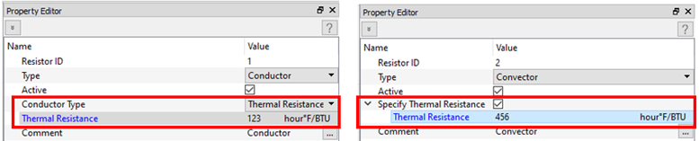 - Thermal resistors take a thermal resistance input in place of geometric and material properties. New input makes it convenient when you need to enter a thermal resistance.