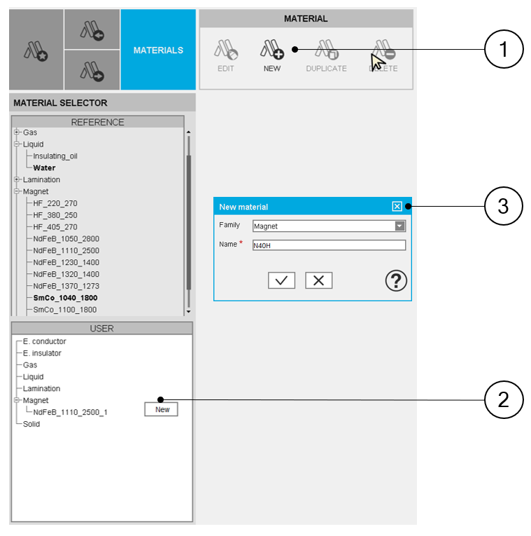 1 | By clicking on the icon “New” in the “Material” menu. |