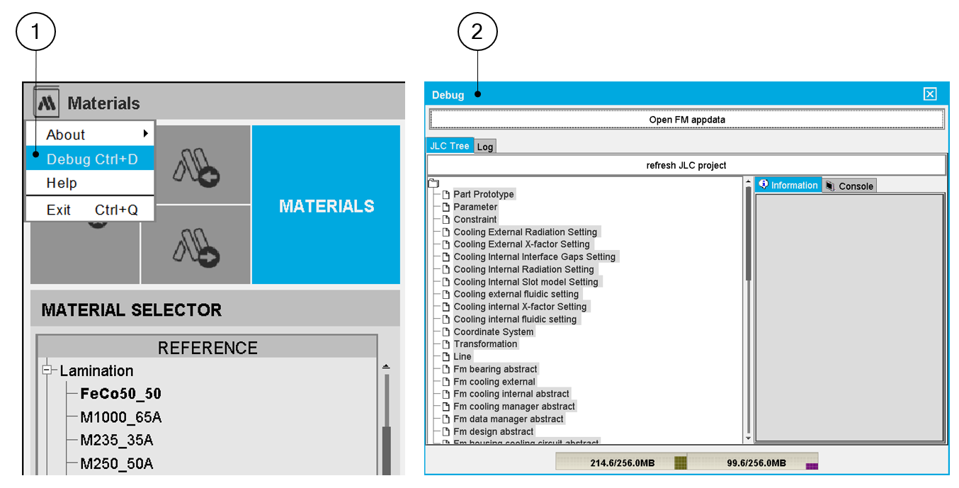 1 | Access to “Debug mode” from the top menu of “Materials” application. |