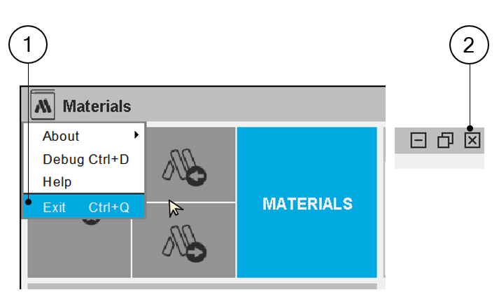 1 | Close “Materials” application from the top menu of “Materials” application. |
