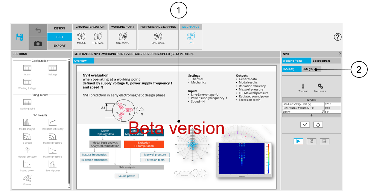 When FluxMotor® User Level is “Beta”, features non-entirely qualified tests which are available for testing.