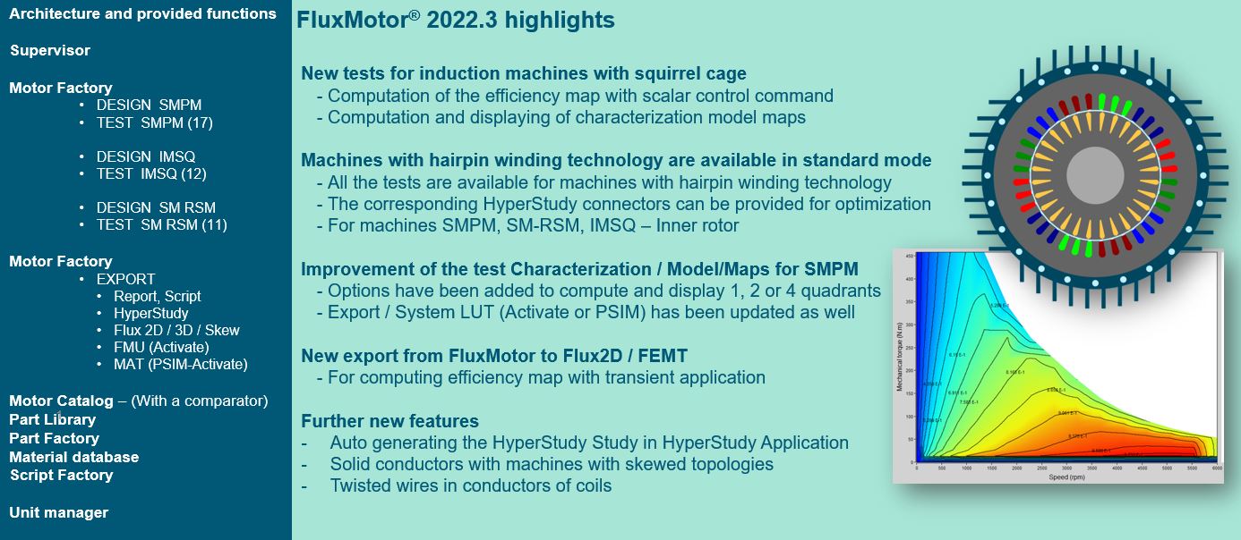 This section gives the major points of the FluxMotor® 2022.3