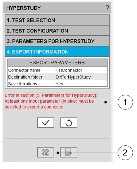 2 | The two buttons to export the connector and run launch HyperStudy are not active if the needed data is missing |