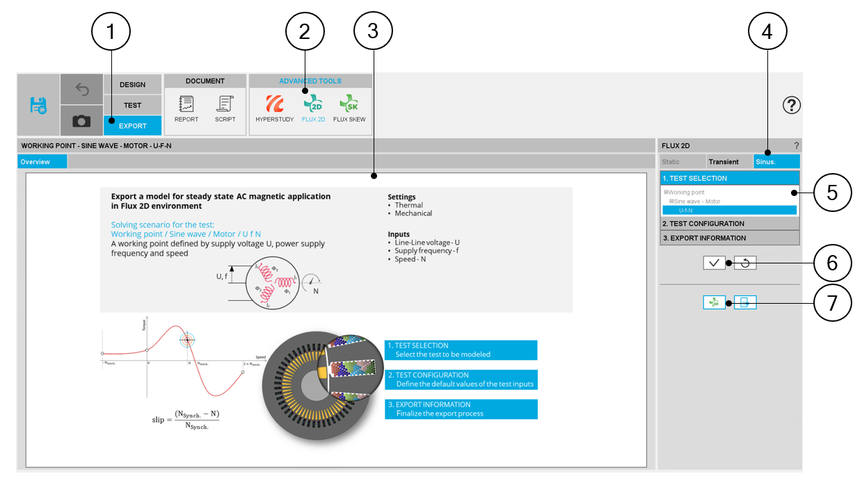 6 | Button to validate inputs and export the python file for building the model in Flux® 2D environment. |