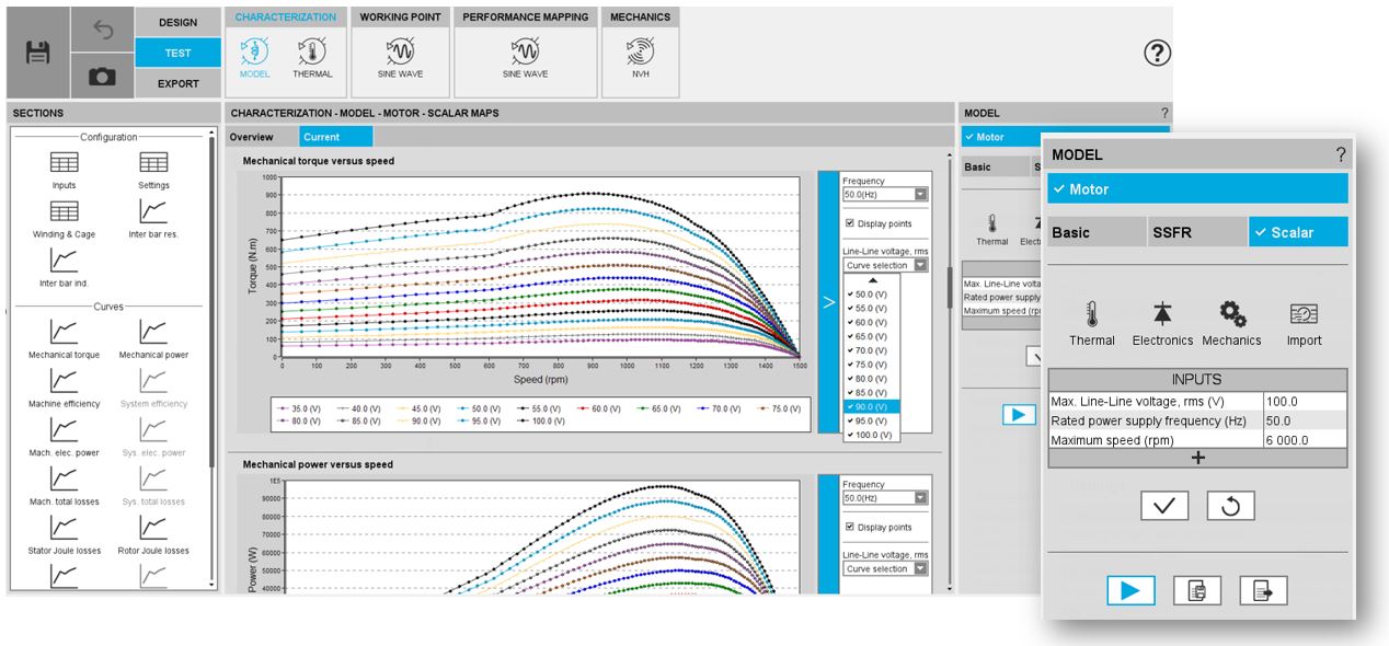 With this test, system engineers will find a characterization tool adapted to their needs and able to provide accurate curves ready to be used in system simulation software, like Activate or PSIM. Indeed, from the results obtained in this test, a scalar drive and control can be applied.