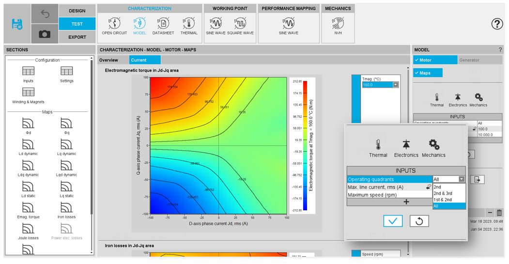 The aim of the test “Characterization - Model - Motor - Maps” is to give 2D maps in Jd-Jq plane for characterizing the 3-Phase synchronous machines with permanent magnets.