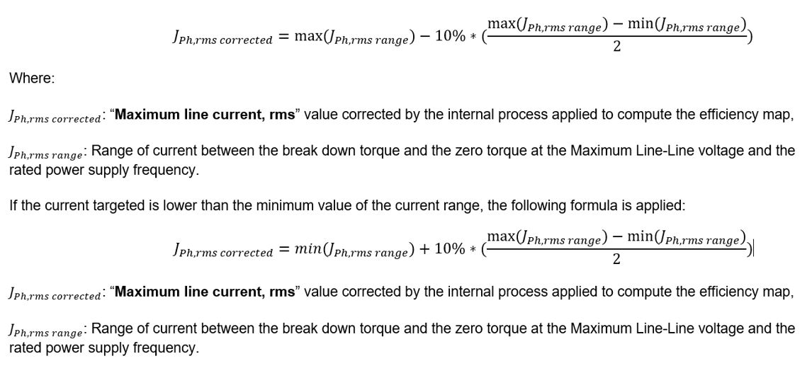 • In case the “Maximum line current, rms” set in input is higher or lower than those in the range defined by the break down torque and the zero torque, an automatic correction is done to target a realistic value (inside the range).