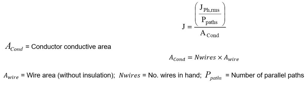 5. By using the “Line current, rms” deduced, and finally the corresponding “Current density, rms” can be computed using the following formula: