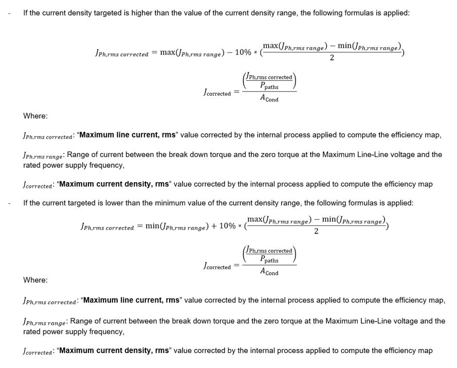 • In case the “Maximum current density, rms” set in input is higher or lower than those in the range defined by the break down torque and the zero torque, an automatic correction is done to target a realistic value (inside the range).