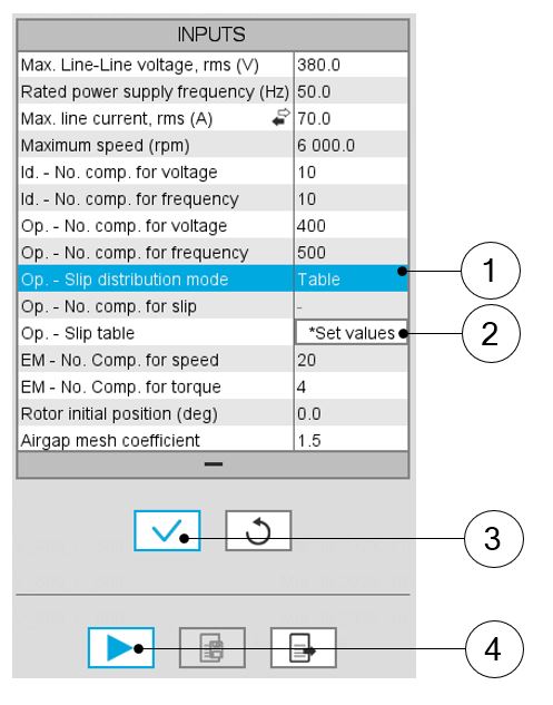 The number of computations for the slip must be defined with the user input « Op. - No. comp. for slip » (Operation of model to generate T(U,f,s) - Number of computations for slip).