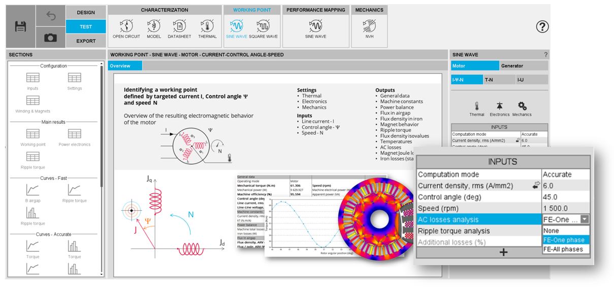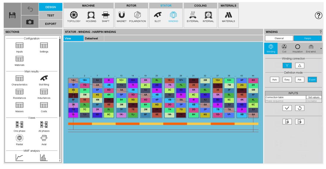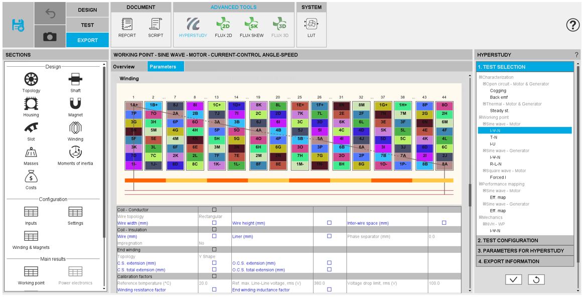 Tests are available for computing performance of machines with hairpin winding topology Motor Factory – TEST area |