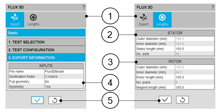 1 | Tab selector to define general export parameters and axial lengths in Flux® 3D environment |