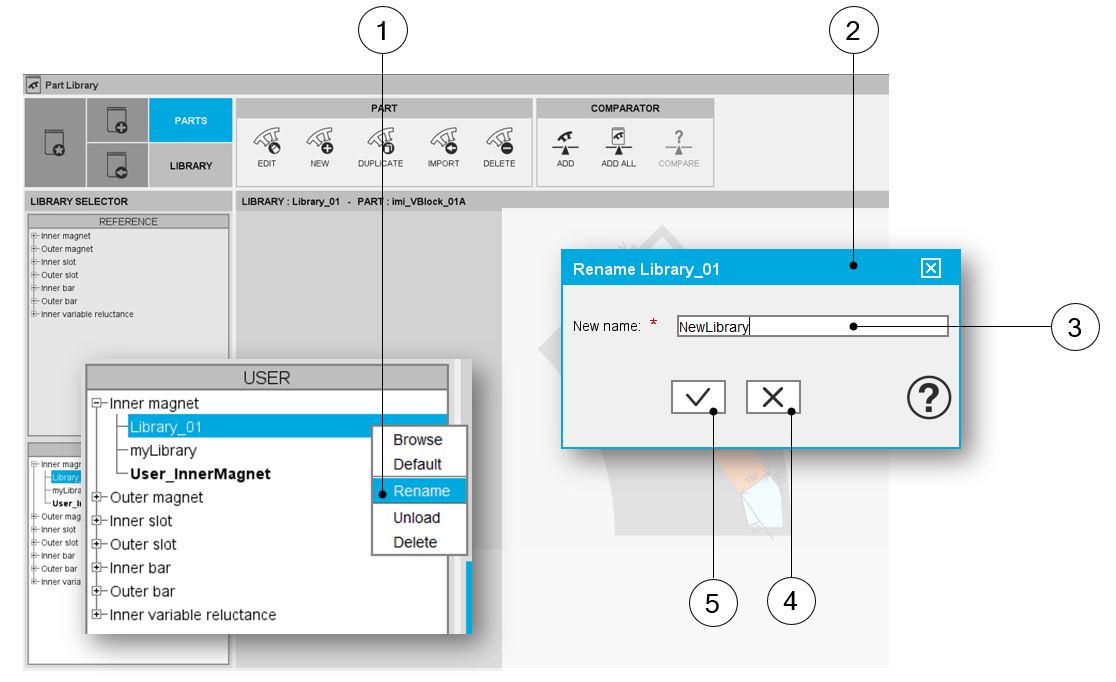 3 Give a new name to the selected library (a name which is not already used in Part Library).