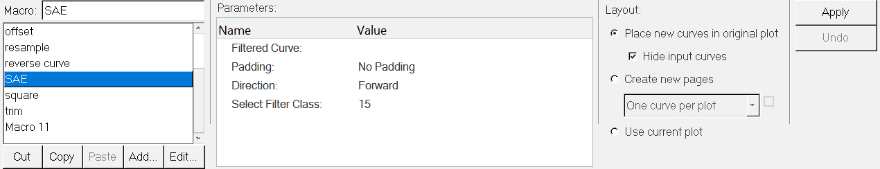 A plot macro can include either a curve, note, or both. Plot macros can be used to capture and replay frequently used curve operations, such as adding two curves together, filtering curves, or filtering and then curve fitting data. They can also be used for frequently used plot notes. You can create and edit plot macros in HyperGraph or load them automatically by registering them in a preference file.