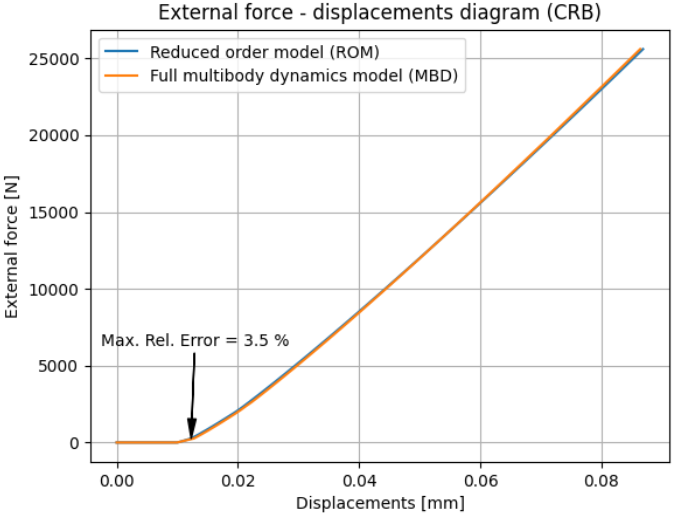 In term of computational performance, the ROM is significantly superior compared to the respective full MBD model for transient analysis.