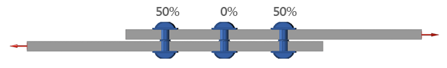 理論上の無限に剛となる結合は以下の図のようになり、荷重は、中心のリベットに0%、両端の各リベットにおいて50%ずつの値が与えられます。