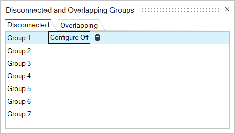 将组配置为关闭 | 在“断开的和重叠的组”对话框中,选择所需的组,然后选择配置为关闭。 | 当组配置为关闭后,它将从诸如质量统计、静态重量计算、优化等计算中排除。 |