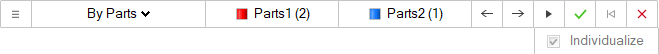 个别化运动接触 点击操作栏上的个别化复选框,然后点击 按钮。 接触图标上的计数器现在报告模型中有两个接触。该操作可以将三个零件之间的单一接触分割成两个零件对之间的两个接触。要将零件个别化的原因是为了绘制每个接触对的运动接触结果。 点击操作栏上的箭头按钮 ,在每个接触对之间进行切换。 点击接触图标退出该工具。