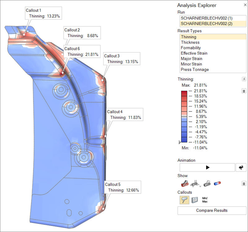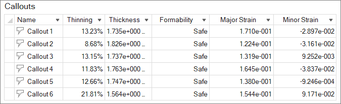 Call out and review values for a selected result type at points of interest on your model using the callout icons in the Analysis Explorer.