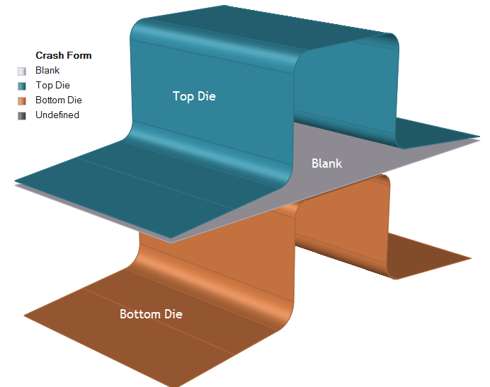 Simulate crash forming where the blank is situated between a top and bottom die without the use of binders or pads to hold the blank in place.
