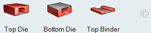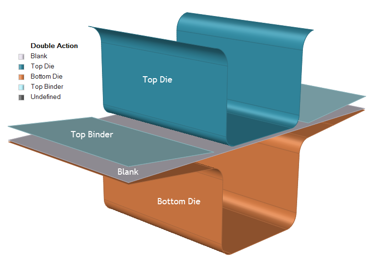 Simulate a top binder holding the blank of a model while the top die deforms the blank against the bottom die to create the desired shape.