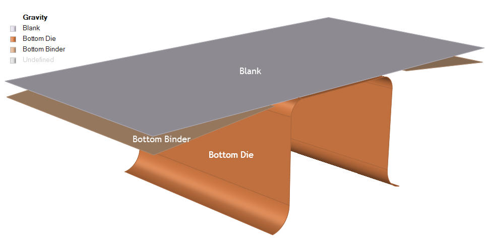 Figure 1. Model Set Up for Analyzing the Effect of Gravity on the Initial ShapeAnalyze the degree of sagging that the blank incurrs from its own weight on the tool.