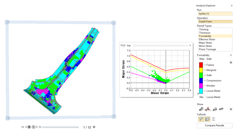 . - To check for any failure zones, select the Formability result type.