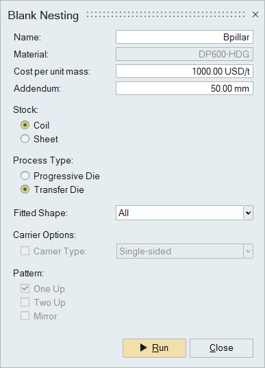 In the Blank Nesting window, define the blank nesting settings: