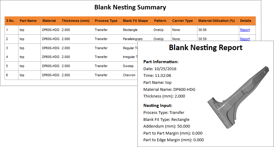 To view a detailed report for any of the blank shapes, in the Blank Nesting