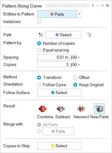 - 変換:各コピーについて、カーブと元のエンティティの間の相対的な距離を維持する。