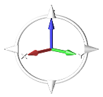 主軸 ビュー回転機能では、x軸、y軸、およびz軸が主軸(グローバル軸)です。 ビューコントロール内の最も近い軸に垂直な面で表示 アイコンをクリックするか、Nを押します。 1回クリックすると、最も近い主軸中心にビューが回転して、選択したオブジェクトがビュー内にフィット表示されます。 クリックするたびに、ビューで選択したオブジェクトのみのフィット表示とモデル全体のフィット表示が交互に切り替わります。