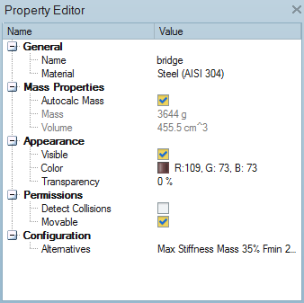 • 名前、材料、色などのプロパティを、パート、荷重、形状コントロールなどのさまざまなオブジェクトまたはモデル全体に割り当てることができます。オブジェクトに割り当てるプロパティは、選択したオブジェクトタイプによって異なります。例えば、材料はパートに割り当てることができますが、荷重やサポートに割り当てることはできません。