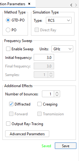 Figure 4. RCS parameters window