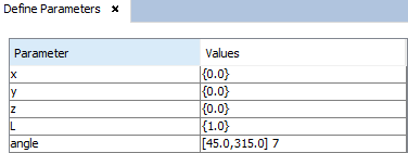 - First step Parameters definition. Click on Geometry - Parameters - Define Parameters menu, and create the parameters that are shown in the figure below.